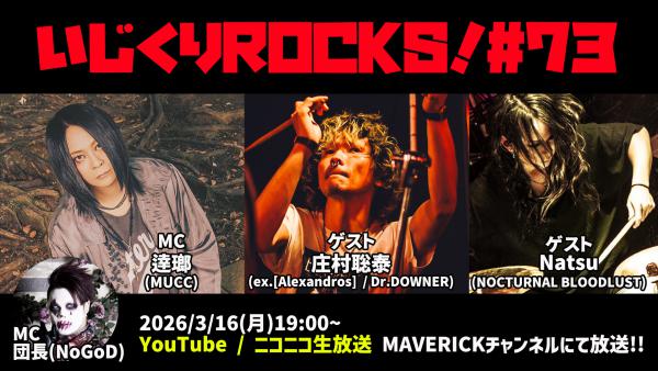 MUCCの逹瑯とNoGoDの団長がMCを務めるMAVERICK DC GROUP公式番組「音楽情報ライヴ いじくりROCKS!」73回目の放送が、2026年3月16日(月)19時より配信される。