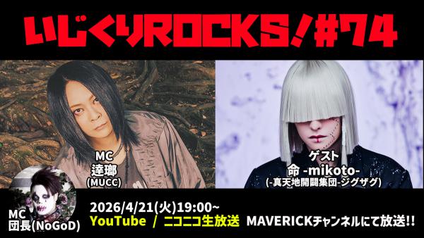MUCCの逹瑯とNoGoDの団長がMCを務めるMAVERICK DC GROUP公式番組「音楽情報ライヴ いじくりROCKS!」74回目の放送が、2026年4月21日(火)19時より配信される。